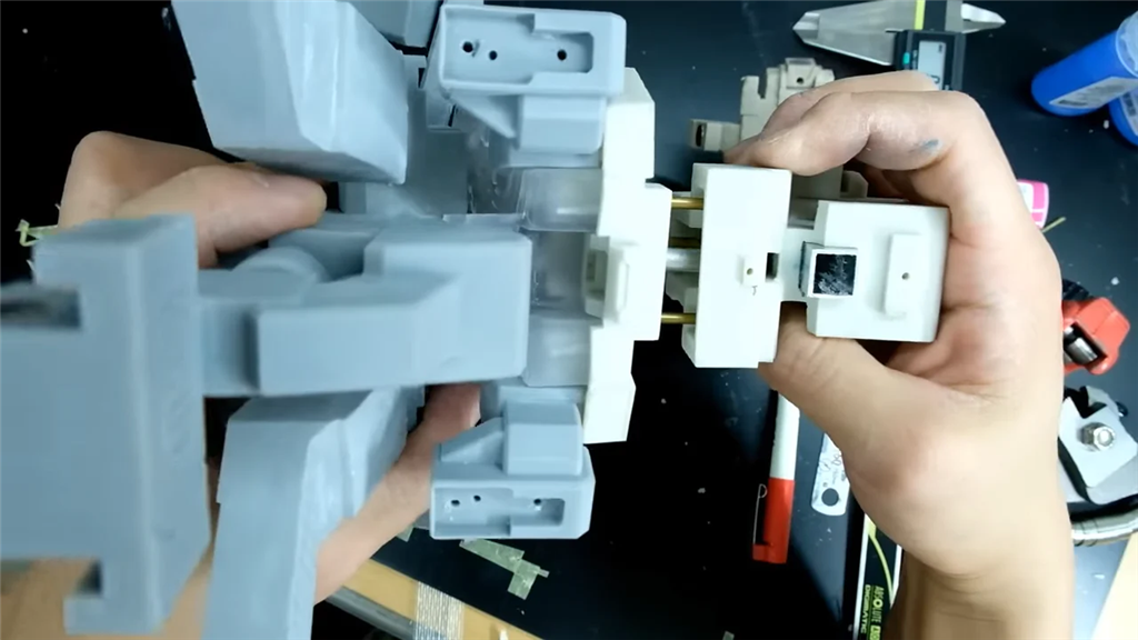 由於他所使用的3D列印UG高達模型非常龐大,他需要特別注意組裝過程。模型越重,就需要在關節(jié)之間提供更強的支撐。