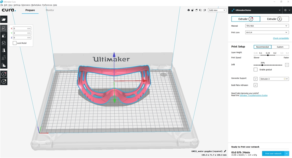 【3D列印應(yīng)用】Ultimaker混合材料測(cè)試:TPU彈性眼鏡框 三帝瑪先發(fā)實(shí)測(cè)又來(lái)啦!上次已經(jīng)分享過(guò)SLS技術(shù)的Sinterit彈性眼鏡框(延伸閱讀:超彈力泳鏡框「粉末」登場(chǎng)!),那麼FDM的TPU材料又如何呢?我們又忍不住為大家優(yōu)先測(cè)試,先一起來(lái)看看它完成後的表現(xiàn): 原本的3D模型就非常帥氣,文末附上連結(jié)讓大家可以自行測(cè)試。 我們這次使用TPU搭配PVA,Ultimaker官方資料中並不建議同時(shí)使用這兩種材料,不過(guò)三帝瑪要率先嘗試這個(gè)做法。本次使用Ultimaker S5進(jìn)行3D列印,預(yù)設(shè)非常細(xì)緻的參數(shù)值,雙噴頭系統(tǒng)可以一次列印兩種不同材料,支撐則會(huì)自動(dòng)形成,完全不需要自己另外建立。 這次採(cǎi)用晶格狀的支撐形式,圖中白色的部分就是可以放入水中溶解的PVA,黑色就是鏡框本體TPU。 經(jīng)過(guò)一天多的時(shí)間列印完成囉!接著就是拿到水裡泡澡等待PVA完全溶解,雖然只要用一般冷水就可以了,不過(guò)對(duì)於大塊體積的物體我們都會(huì)在水箱內(nèi)搭配打氣機(jī),溶解速度會(huì)加快不少。 本次3D列印採(cǎi)用PVA支撐溶解後的TPU彈性眼鏡框終於完成,和一般以拆除方式進(jìn)行的支撐比起來(lái),表面更加乾淨(jìng)漂亮。 工業(yè)用的TPU 95A(熱塑性聚氨酯)線材,特性介於橡膠與塑膠之間;具有半柔性且耐化學(xué)腐蝕的特點(diǎn),具有較強(qiáng)的機(jī)械性能。此外,它也比其他的TPU材料更容易進(jìn)行3D列印且速度更快。 若需要彈性材質(zhì)的3D列印測(cè)試原型,TPU 95A線材提供您另一種快速優(yōu)質(zhì)的好選擇,想了解更多使用TPU 95A進(jìn)行3D列印的訣竅可以參考這裡。 想知道更多3D列印實(shí)測(cè)?歡迎持續(xù)關(guān)注三帝瑪官網(wǎng)及粉絲專(zhuān)頁(yè),我們會(huì)持續(xù)為各位提供3D列印的訊息及測(cè)試。先前分享過(guò)另一種SLS技術(shù)的Sinterit眼鏡框,也提供給各位共同比較喔! 追蹤粉絲頁(yè)、消息不漏接:https://www.facebook.com/m.midday800.com/ 檔案來(lái)源:https://grabcad.com/library/water-goggles-1
