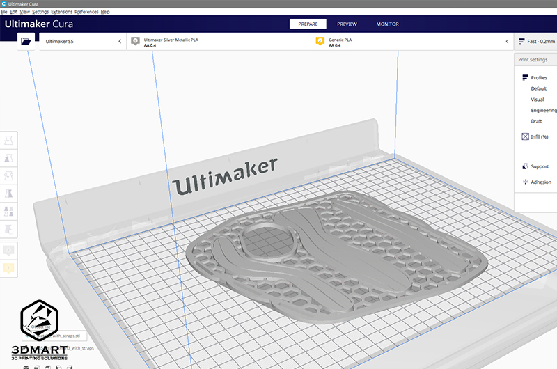 我們在3D開源模型站上找了兩種款式的固定器及護(hù)腕,分別適用於軟料與硬料列印,在Cura的預(yù)視效果可以看到軟料只需攤平列印即可。(