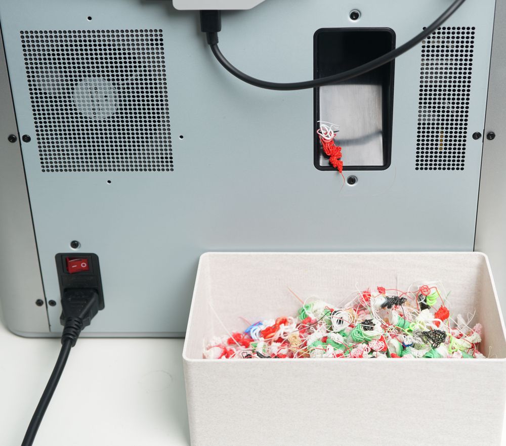 除了這些照顧線材餵養(yǎng)的部件,整個系統(tǒng)是密閉的,並有一個濕度感測器。加裝矽膠O型圈,確保濕氣不能進入,進而破壞吸濕性的線材,如PA、PC等等。在列印機本體上,用於清洗材料的垃圾滑道坡,減少列印清洗塔所用的時間,以及工具頭上的線材切割器,切斷不需要的線材。