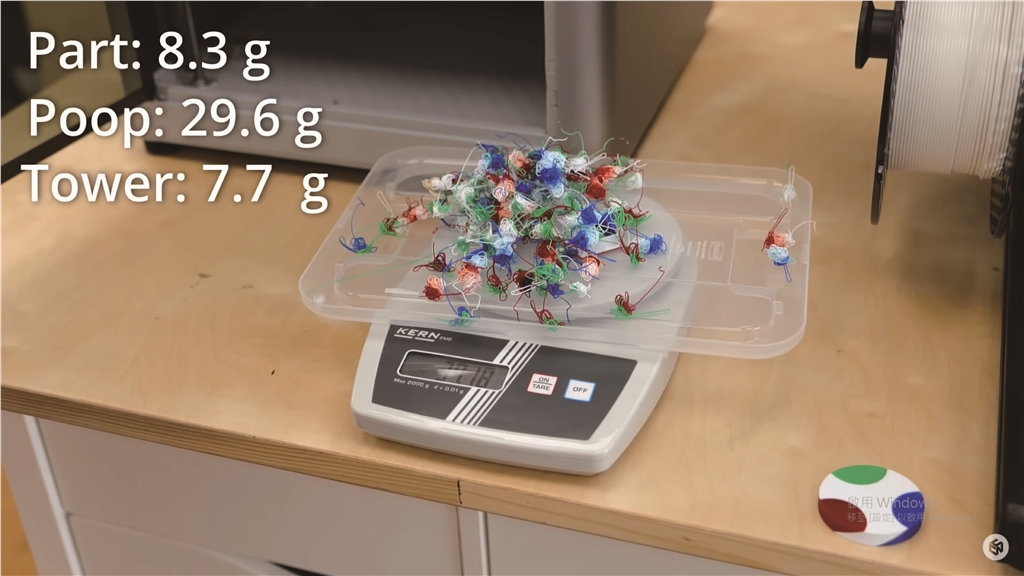 最終零件本身僅重 8.3 克,但它產(chǎn)生了 29.6 克“廢物”,清除塔上又產(chǎn)生了 7.7 克——因此,對於 8 克的打印件來說,產(chǎn)生了 37 克的廢物。這聽起來可能有點(diǎn)極端,但這就是當(dāng)顏色不斷變化時這個過程的工作原理。