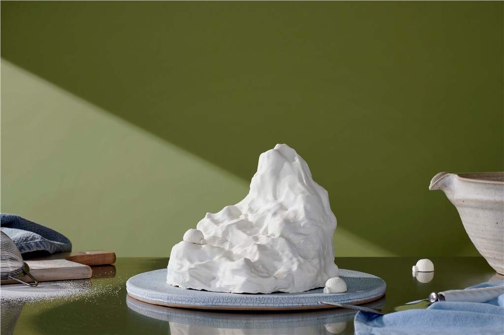 另一方面,冰山造型極具野心。保羅用調(diào)溫巧克力填充模板,去除多餘的巧克力,製成可填充的冰山外殼,然後他在裡面裝滿不同層的冰糕、海綿蛋糕與更多的巧克力。所有組件一旦都組裝好,冰山就可以脫模啦!正確調(diào)溫的巧克力在凝固時(shí)收縮,代表使用Mayku的彈性材料片時(shí),脫模會(huì)更簡單快速。
