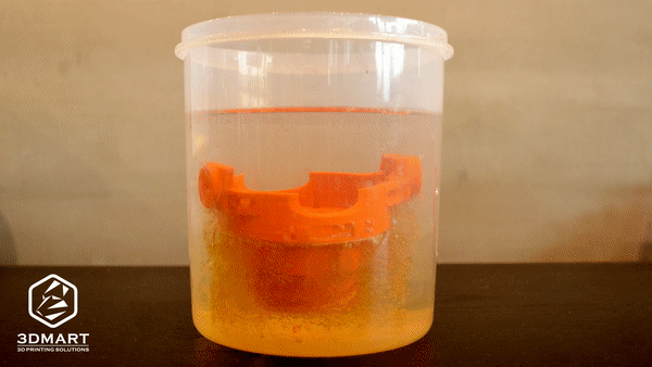 ,很快就會化開呈現(xiàn)半透明的琥珀黃色,變成濃稠細(xì)絲顆粒,接著就可以看見原本被支撐包覆的主體;不需要溶劑、不用手動拆除就能快速溶解,脫離支撐的零件最後會浮出水面,溶解支撐毫不費力又節(jié)省時間,通常