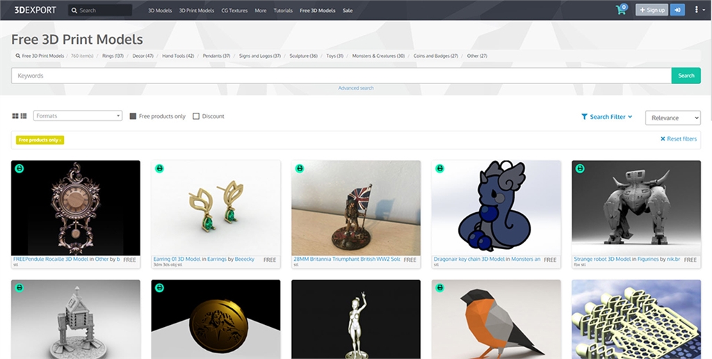 3DEXPORT網(wǎng)頁上有超過23,000種高品質(zhì)的3D列印模型,也提供CAD檔案、模型雕刻紋理、遊戲開發(fā)等詳細(xì)內(nèi)容;另外還提供電子書說明、材料連結(jié),可以幫助新手入門的設(shè)計(jì)者,快速了解STL檔和3D列印的多方面教學(xué)。