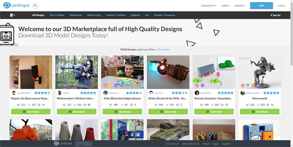 Pinshape集結(jié)70,000名3D模型愛好者,提供成千上萬的3D檔案,玩具模型、機(jī)械設(shè)備零件、珠寶、居家小物模型應(yīng)有盡有!每個(gè)STL檔都可以進(jìn)行3D列印,使用者不但能在平臺上分享、出售你的設(shè)計(jì),也能簡單搜尋並下載各種模型。