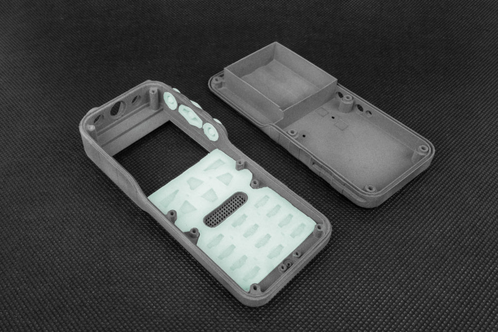 除了對講機主體使用PA12尼龍粉末列印,配件如TPU天線及彈性矽膠按鈕也使用Sinterit Lisa 3D列印機開發(fā)原型。所有零件以開模製作將花費超過四萬美元,比起一次性的費用,設(shè)計師選擇投資SLS 3D列印機設(shè)備;不但省下75%的花費,還能用於後續(xù)的其他專案。以往該公司外包製作的專案平均需等待幾週並花費八千美元以上,這次設(shè)計師決定嘗試內(nèi)部開發(fā),整個過程耗時兩天、費用不到兩百美元。由於3D列印的品質(zhì)精良,設(shè)計原型可以提供客戶測試確認,定案後才製作量產(chǎn)模具。