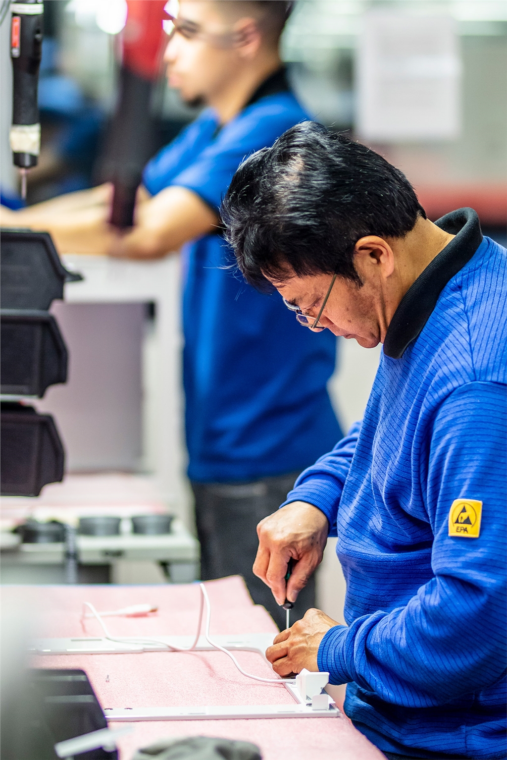 組裝好的框架必須完全放在平坦的表面上並且沒有任何外觀瑕疵。在認(rèn)證後,送往主要生產(chǎn)區(qū)安裝進料器、噴頭和加熱平臺…等部分;主要產(chǎn)區(qū)為完全抗靜電環(huán)境,以避免破壞任何內(nèi)部電子元件。