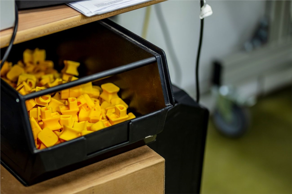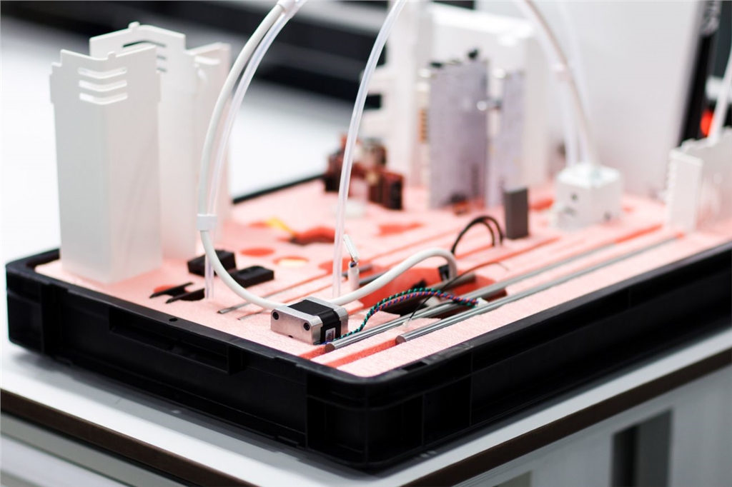 泡棉隔層會按照組裝的順序堆疊在箱子裡,最上層的零件必須在下一層開始之前全部安裝到3D列印機內(nèi),以維持產(chǎn)線順暢。