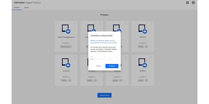 在Ultimaker Digital Factory中可以簡(jiǎn)單複製、排序作業(yè)順序,還能直接在線上重新命名你的3D列印機(jī);連動(dòng)新的Ultimaker 3D列印機(jī)時(shí),只需在該臺(tái)設(shè)備的觸控螢?zāi)簧线x擇「Connect」,再輸入Ultimaker Digital Factory上的代碼後就能遠(yuǎn)端串連!