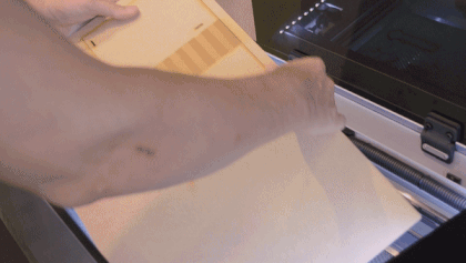 按下預(yù)示功能會看到雷射頭空跑即將切割的最大範圍,放入材料後就可以開始雕刻囉!如下的動態(tài)可以看到圖案會像這樣漸漸浮現(xiàn),這次的圖案大小只要約十分鐘左右的時間就能完成,非??焖?!