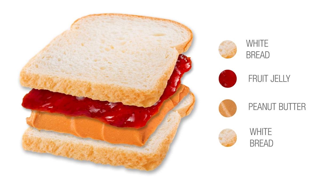 (美式經(jīng)典花生果醬三明治,在北美地區(qū)相當(dāng)普遍,可以說(shuō)是美國(guó)的經(jīng)典食品。)