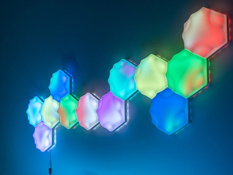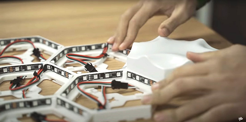 的燈具底蓋中,然後依照喜好排列組合所有六角形,最後把真空成型製作的外殼蓋上,啟動(dòng)LED燈條電源,迷幻的視覺饗宴即將開始!