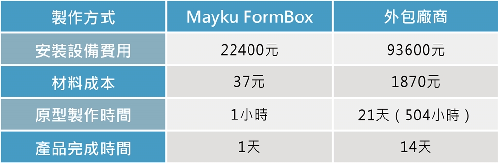 FormBox真空成型材料片可以重複使用,前置設(shè)計流程通過客戶那關(guān)後,查理只要重複進(jìn)型填充模具的動作,一個人也能快速、穩(wěn)定的完成系列小量生產(chǎn);不僅如此,完成產(chǎn)品製作後,還能用FormBox來生產(chǎn)泡殼包裝,產(chǎn)品開發(fā)一機(jī)包辦!