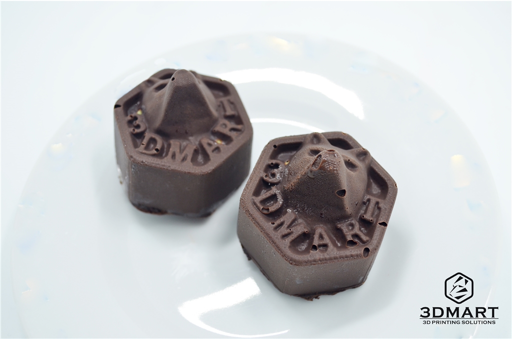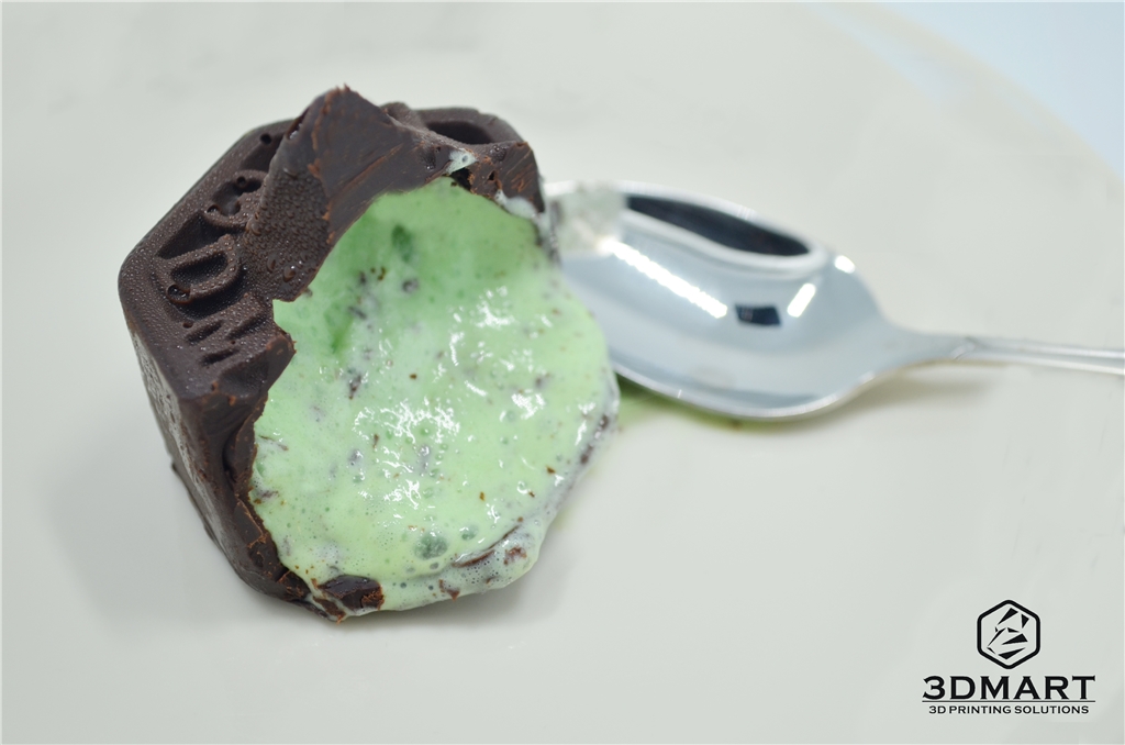 【3D列印快訊】中秋一同賞月 3D列印自己做月餅 你想的到用3D列印來做月餅模型嗎? 你可以不在侷限於市面上的月餅,做出你專屬的月餅,來看看我們3DMART 專屬的月餅吧~~~ 中秋節(jié)即將到來,每到這一天大家就會聚在一起,一同烤肉吃柚子和大吃月餅。 每年中秋節(jié)月餅都不斷推陳出新,有各種口味任君選擇,但若能自己做月餅就可以用更特別的口味,造型也能隨 自己喜歡的來製作。 於是今年3DMART決定自己做月餅來吃,口味當然要做特別的,猜猜我們是做什麼口味的呢? 3D列印月餅製作流程 首先將我們設計好的3DMART熊造型的3d檔案用Ultimaker 3d列印機列印完成,月餅中間蹦出來的熊頭, 就是我們LOGO 裡的熊的造型,旁邊再加上文字,讓月餅更有整體性。 3D列印完成的月餅模型 將月餅模型放入酒精拋光機蒸一會兒,讓表面更加平滑,帶模型全乾後,就可以製作矽膠模囉! 左邊為為拋光過的3D列印模型,右邊是用酒精拋光過的3D列印模型 矽膠模製作方式請參考之前蜘蛛人頭蠟燭文章,這裡就不一一解釋了,我們這次是用小紙杯協(xié)助製作。(小提醒: 這 裡使用的矽膠必須是食用級的唷!) 接下來就是主廚料理的時間囉! 大家可以選擇放自己喜歡的餡料唷,我們愛吃巧克力,所以就都選用巧克力,外層是 黑巧克力,內(nèi)餡是薄荷巧克力冰淇淋,非常新型的月餅口味,好像比較像蛋糕?! 看起來很好吃吧! 實際上吃起來也是十分美味唷~~~ 非常幸福的享用中,拍完照片立刻被大家吃光光,是有多餓?? 內(nèi)餡的巧克力薄荷冰淇淋 若是你手邊剛好有一臺3D列印機的你,趕快自己也來DIY 一個月餅(甜點?!)來吃吧!