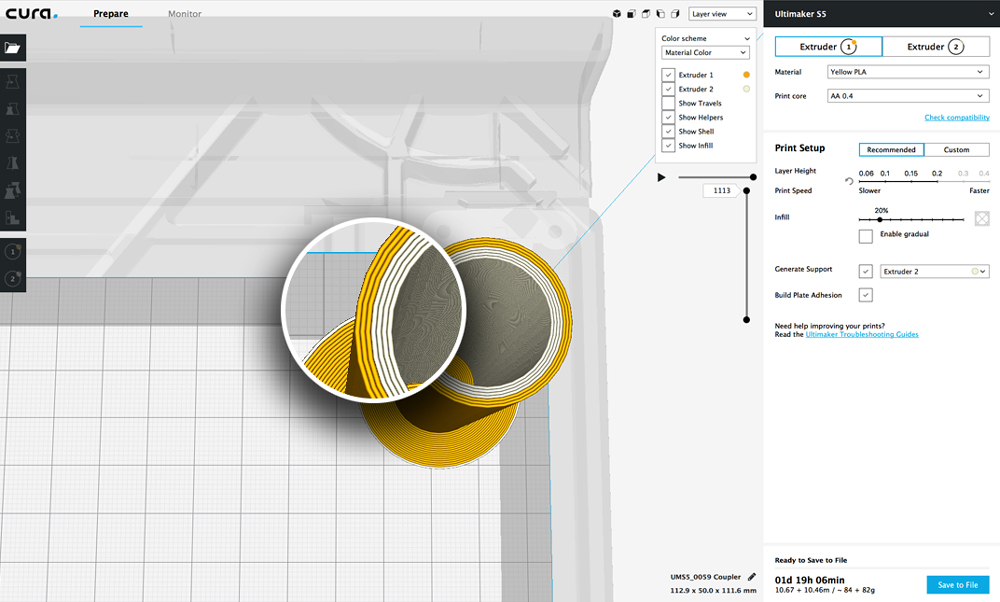 Ultimaker Cura 3.5挾帶最新功能和極佳切片性能,適用Windows、MacOS和Linux??炜葱掳姹居心男┛旌轀?zhǔn)的3D列印體驗(yàn)? 快速導(dǎo)覽Ultimaker Cura 3.5有什麼新功能? .快速鍵 使用快速鍵切換模型操作工具,以獲得更好的用戶體驗(yàn) .監(jiān)控畫面 重新設(shè)計(jì)的Ultimaker Cura監(jiān)控畫面,以便與Cura Connect更加一致。 .3MF檔案格式 不再使用「curaproject」擴(kuò)增程序,所有Ultimaker Cura檔案現(xiàn)在都能以3MF格式保存,能與其他3D軟體更相容。 新的使用者體驗(yàn) .檔案選單:我們已經(jīng)改變了檔案選單的形式;「保存」為現(xiàn)在儲(chǔ)存該檔案,「匯出」則是將模型保存為另一種檔案格式。 .新工具快速鍵:已指定快速鍵用於平移(T)、縮放(S)、旋轉(zhuǎn)(R)和鏡像(M)工具之間的快速切換。 .開啟最近的項(xiàng)目:現(xiàn)在可以在「開啟最近…」選單中找到您最近一次的檔案以及常用模型。 .材料偏好:現(xiàn)在可以將材料設(shè)置到資料夾,因此可以在右上角的材料選單面板中快速的找到它。 .監(jiān)控頁面:Ultimaker Cura的監(jiān)控頁面經(jīng)過改良設(shè)計(jì),與Cura Connect的「列印作業(yè)」界面更加一致;減少轉(zhuǎn)換的銜接時(shí)間,強(qiáng)化Ultimaker Cura內(nèi)部的控制性。 .保存項(xiàng)目:保存項(xiàng)目不再重新切片,是需要長時(shí)間切片檔案的理想選擇! .切片增強(qiáng)功能 改善垂直建構(gòu)面處理:自動(dòng)檢測垂直建構(gòu)面並以不同的速度列印,並且不會(huì)在懸空的部份開始列印。以不同的速度列印不同的建構(gòu)面可以提供更高品質(zhì)和穩(wěn)定的成品。 .最小多邊形周長 周長小於設(shè)定值的切片層多邊形會(huì)被過濾掉,數(shù)值愈小愈能創(chuàng)造高分辨率的結(jié)果,但會(huì)增加切片時(shí)間;這個(gè)設(shè)定適用於具有大量細(xì)節(jié)的小規(guī)模列印或SLA列印機(jī)。 .設(shè)定底層支撐密度 該設(shè)定能夠增減底層支撐材的密度,以調(diào)整對加熱板的附著力和整體強(qiáng)度。 .額外的填充建構(gòu)面 這會(huì)在填充區(qū)域周圍增加額外的垂直建構(gòu)面,這有助於支撐頂部/底部的表面線條以減少下垂。讓您減少頂部或底部表層列印也能獲得相同品質(zhì),但需要消耗一些額外的材料。 .穩(wěn)固主體 使用兩種不易黏附的材料進(jìn)行列印可能會(huì)導(dǎo)致主體列印失敗,因此我們重新利用主體來生成一種材料的外殼並作為第二種材料的附著空間,測試後比以前更堅(jiān)固穩(wěn)定。 .多次填充 在同一個(gè)圖面上生成多個(gè)填充線讓主體更堅(jiān)固。 .連接填充的多邊形 與連接填充線類似,現(xiàn)在可以將同一層的多邊形支撐連接在一起;此功能可與「多次填充」和「額外填充」結(jié)合使用,以確保任何填充圖案的連續(xù)模式。 .風(fēng)扇速度覆蓋。 在「支撐設(shè)定」選單中的「風(fēng)扇速度覆蓋」下,添加了一個(gè)新設(shè)定來修改橋接區(qū)域的風(fēng)扇速度,這僅在使用支撐材料的時(shí)候有效。 .最小壁厚 「外殼」類別中添加了一個(gè)新設(shè)定,用於定義薄殼列印面的最小值。 .支撐填充線方向 現(xiàn)在可以旋轉(zhuǎn)支撐填充線以增加支撐功能並減少模型上的瑕疵,這個(gè)設(shè)定可旋轉(zhuǎn)現(xiàn)有圖案:例如三角形支撐填充。 新的外掛程式 .Cura設(shè)置指南 一個(gè)詳細(xì)、可搜索的Cura索引,包含圖像以供參考。 .自訂支撐 停止自動(dòng)生成支撐的工具,透過選取部分來手動(dòng)添加想要的支撐部分。 .快速切換自動(dòng)切片 添加切換按鈕以快速啟用/禁用自動(dòng)切片。 .標(biāo)題欄中的版本 在應(yīng)用程序標(biāo)題欄中顯示版本以便快速參考。 .支援外部列印機(jī) 為TiZYX、Winbo、Tevo Tornado、Creality CR-10S和Wanhao Duplicator添加了新的預(yù)設(shè)文件。 Deltacomb和Dacoma的設(shè)定也已經(jīng)更新。 .錯(cuò)誤修復(fù) 為了獲得更好的穩(wěn)定性和性能,我們在此版本中修復(fù)了各種錯(cuò)誤。這包括刪除GCODE中多餘的M109命令和不必要的動(dòng)作,改善額外的表面建構(gòu)數(shù)量和列印模型的順序等等。 感謝smartavionics、fieldOfView、BagelOrb、Kriechi、MarmaladeForMeat和cubic的貢獻(xiàn)。我們還要特別感謝所有幫助我們?yōu)榇税姹咎峁┳罴延脩趔w驗(yàn)的測試人員。 更棒的是,這是免費(fèi)的!立即免費(fèi)下載Ultimaker Cura最新版,或者逛逛我們的其他頁面了解3D列印的資訊及最新消息。 所有最新資訊會(huì)優(yōu)先公布於粉絲專頁,歡迎追蹤我們讓您持續(xù)獲得新資訊。 粉絲專頁:https://www.facebook.com/m.midday800.com/ 原文連結(jié):https://ultimaker.com/en/blog/52726-new-3d-printing-features-ultimaker-cura-35-is-here?utm_campaign=coschedule&utm_source=facebook_page&utm_medium=Ultimaker&utm_content=New%203D%20printing%20features:%20Ultimaker%20Cura%203.5%20is%20here%20|%20Ultimaker