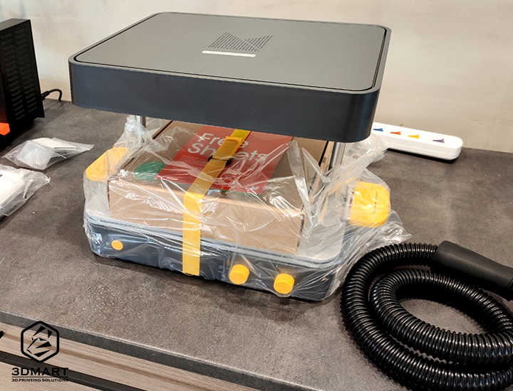 打開箱子以後會看到完整的保麗龍包裝,將保麗龍拆開後除了FormBox 真空成型機本體以外還有許多和束帶綁在一起的配件和一條黑色連接管,現(xiàn)在就一一為大家介紹吧!