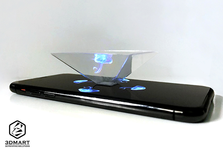 將這個四面體剪下,放在手機上就能自製出立體效果的「全息投影」,我們下載的立體水母有飄浮動態(tài),第一次開箱就成功讓大家玩的不亦樂乎,各位也可以自己做一個試試看喔!