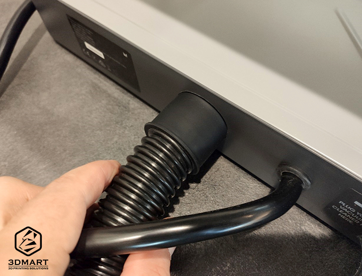 接著和你想的一樣簡單,將連接管另一端接上吸塵器、吸塵器的插頭也接上FormBox後方的插座孔就完成了,並將FormBox接電、吸塵器開關打開後就可以開始進行測試囉!