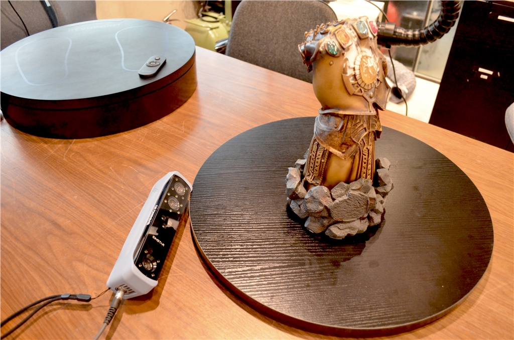 完成3D掃描的薩諾斯手套,可以看到複雜紋理的細(xì)節(jié),從顏色上的多變、手指關(guān)節(jié)處、底座巖石紋理都高精度的完整成像,彈指的震撼完美還原!