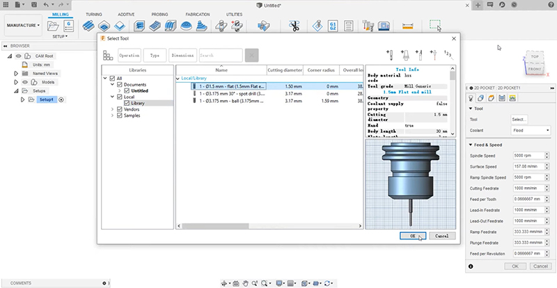 Tool Library>Local>Library>Import Tool Library,並根據(jù)所使用的刀頭導(dǎo)入相應(yīng)的檔案。