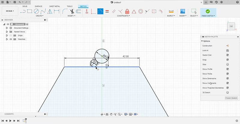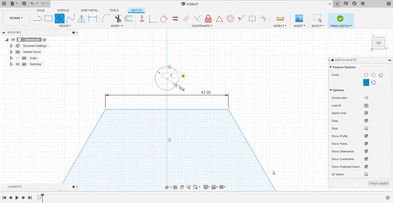 依照需求繪製圖型,若最終成品為六邊形物件,首先只需大概做出圖型輪廓即可。點(diǎn)選「Create Sketch」,選擇XY軸線為基準(zhǔn)的平面,新增草圖。