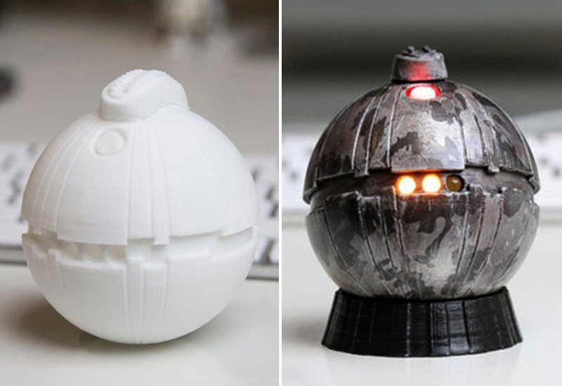 在《星球大戰(zhàn)》中出現(xiàn)的熱能手榴彈是個(gè)體積小但攻擊性非常強(qiáng)的炸彈,這個(gè)致命的武器現(xiàn)在也可以3D列印製作出來,但不是炸彈而是精美的LED燈!