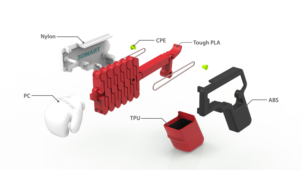 【3D列印應(yīng)用】六種線材大團圓!複合材質(zhì)拳擊槍! 三帝瑪樂於為各位嘗試各項材料及3D列印實測,一般的樣品卡太單調(diào)又無法看出韌性和強度等功能,因此我們製作了複合材質(zhì)拳擊槍!各位小時候大概都看過這個玩具,別看這拳擊槍小小一把,它可是結(jié)合了六種材質(zhì)!每種材料都有各自適合的功能,另外,我們也在結(jié)構(gòu)設(shè)計中空觀景窗,讓大家可以清楚看到拳擊槍有趣的運作方式: 主要的伸縮柵為Tough PLA,堅固性與ABS相似、不易脆化,適合用於功能性零件;組合式槍柄的部分為尼龍與ABS,這兩種材料除了堅固度以外,尼龍更具有彈性與韌性,因此足以承受支點的受力。槍柄套筒的部分則是具有伸縮彈性的TPU,能更好的適應(yīng)形狀變化;綠色的固定器栓則使用CPE,具有耐溫性、機械強度,能供物件和機械零件使用的特性,拳頭最常受到外力撞擊,因此選用高強度PC進行3D列印。 本次皆使用Ultimaker 的原廠線材為主,通常包含不同材質(zhì)要考慮到不同的收縮率,但由於Ultimaker列印的尺寸精確,切片軟體Cura中也有預(yù)設(shè)參數(shù),因此這些零件的結(jié)合性依然非常好。其中當然也少不了Ultimaker雙噴頭系統(tǒng)帶來的好處,讓我們能活用PVA水溶性支撐材料,放進水裡就能獲得精準尺寸和漂亮表面。 這些就是3D列印完成後的七個零件,現(xiàn)在就按照圖解方式進行組裝: 首先,將橡皮筋和綠色的固定栓、伸縮柵放入把手的卡榫中,接著將另一邊完全對稱的橡皮筋和固定栓一併放上。 蓋上黑色的ABS槍柄,確定每個卡榫都準確合上,最後再套入拳頭和槍套就完成囉! 對3D列印技術(shù)有興趣?三帝瑪春節(jié)過後即將開設(shè)3D列印講堂,現(xiàn)場也能看到這支拳擊槍喔!新春帶你印起來,線上報名快點我!座位有限、額滿為止! 我們還會持續(xù)和大家分享與3D列印有關(guān)的各項新資訊及實測,所有最新消息都會公布於我們的粉絲專頁! 追蹤粉絲頁、消息不漏接:https://www.facebook.com/m.midday800.com/