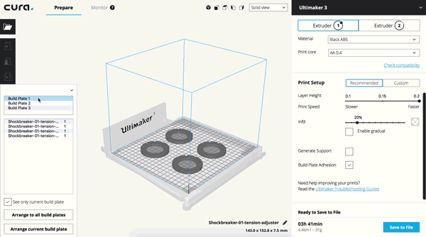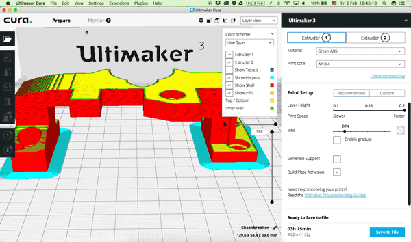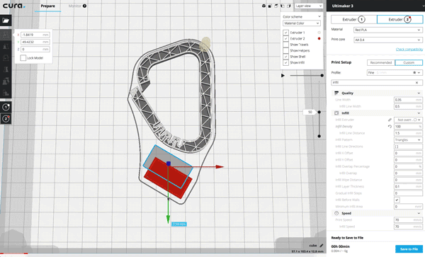 【3D列印快訊】Ultimaker Cura 3.2新版本發(fā)布! 測試階段已結(jié)束,我們非常有信心地要向您展示Ultimaker Cura 3.2的正式版。 在這個版本的Ultimaker Cura中,我們優(yōu)化了用戶界面,以減少GPU對背面剔除的負(fù)擔(dān),增加了新的UI元素, 允許在每個模型設(shè)置中創(chuàng)建網(wǎng)格物體,甚至只需加載即可進(jìn)一步縮短啟動時間必要的資料。 繼續(xù)閱讀以了解更多新功能。 增強(qiáng)切片功能 自適應(yīng)層 - 截至目前,切片被限制在一個固定的圖層大小。自適應(yīng)圖層提供一種替代方法,其中圖層的列印厚度 與模型表面的角度配合。 切片算法將較窄的層厚分配給傾斜表面,並將較寬的層厚分配給垂直表面。達(dá)成高質(zhì)量表面的處理結(jié)果,但需要 稍微增加列印的持續(xù)時間。該設(shè)定可以在實(shí)驗(yàn)(experimental)的分類下找到。 可在「圖層視圖」模式中找到「圖層厚度」的顏色方案讓您能夠預(yù)覽列印的圖層厚度。 從黃色(最厚)到藍(lán)色(最窄)的顏色表示每層的相對厚度。 樹狀支撐 - 樹狀支撐是一種實(shí)驗(yàn)的支撐方法,使用「分支」「生長」並向需要支撐的區(qū)域長出,模型上的接觸點(diǎn)更少 ,表面光滑度更好。使他成為有機(jī)品列印的理想選擇。也可以與其他支撐方法一起使用樹狀支撐。 樹狀支撐可用於有機(jī)體形成的物件。 UI元素 多層列印平臺。通過在軟體首選項(xiàng)中啟動多重列印平臺,可以在工作區(qū)中增加一個新的面板,使您可以在單個選單中 使用共享設(shè)定管理單獨(dú)的列印平臺。每個單獨(dú)的列印平臺會被加到Cura Connect的列印陣列中。 這解除了多次清除列印平臺的需要,以便更好地縮放操作,並更大限度地延長正常運(yùn)行時間。 在單個選單中有多個列印平臺的切片檔案。 更快啟動 - 現(xiàn)在在增加列印機(jī)時就會載入列印機(jī)定義,不是在啟動時載入所有可用的列印機(jī),與之前版本相比,減 少啟動的時間。 網(wǎng)格在每個模型設(shè)置 - 其他選項(xiàng)已加到每個模型的設(shè)定,提供簡化的方法來分配模型列印為網(wǎng)格。當(dāng)處於自定義模 式時,可以將不同的切片設(shè)定分配到列印的不同部分,例如,一個網(wǎng)格作為自定義的支撐時,自動生成的支撐材料 不會放置在你不喜歡的地方。 下拉列表讓您可以指定網(wǎng)格的功能: 正常模型 (Normal model )- 將網(wǎng)格列印成正常模型。 列印成支撐(Print as support ) – 將網(wǎng)格列印為支撐材料。 不與其他模型重疊支撐(Don't overlap support with other models ) - 在網(wǎng)格重疊的區(qū)域不會生成支撐材料。 修改與其他模型重疊的設(shè)定(Modify settings for overlap with other models) - 將網(wǎng)格重疊的部分中列印網(wǎng)格以代替模型。 修改其他模型的填充設(shè)定(Modify settings for infill of other models) - 網(wǎng)格將在網(wǎng)格重疊的部分列印為填充。 修改其他模型的填充設(shè)定 這個登山扣是一個長方體網(wǎng)格切片,選擇「修改其他模型的填充設(shè)定(Modify settings for infill of other models)」。 網(wǎng)格跟分配給更密集的填充設(shè)定的其餘模型相比,能給重疊部分更大的耐用性。 背面剔除 - 通過只渲染模型的可見曲面,而不是渲染整個模型,讓層視圖在性能上更加提升。明顯提升了幀速率, 並降低了GPU的負(fù)荷。 更新側(cè)欄到QtQuick 2.0 - 應(yīng)用程式欄位已更新成提升速度,更合適的寬度和風(fēng)格,並為用戶提供下拉式選單,以配 合啟用的Ultimaker Cura主題,而不是操作系統(tǒng)的主題。 隱藏側(cè)邊欄 - 現(xiàn)在可以通過選擇View> Expand / Collapse Sidebar,或使用熱鍵CMD + E(Mac)或CTRL + E (PC和Linux)來隱藏或顯示側(cè)邊欄。這是為了擁有更寬廣的列印平臺,讓在小屏幕上顯示的列印平臺擁有更大的可 見性。 隱藏邊欄以獲得更好的視圖 禁用「發(fā)送切片訊息」- 在第一次啟動時增加禁用「發(fā)送切片訊息」的快捷方式,使需要隱私的用戶更容易保持切 片訊息的私密性。點(diǎn)擊禁用按鈕會將用戶帶到首選項(xiàng)(preferences),他們可以自行編輯首選項(xiàng)。 簽名的二進(jìn)製檔案(Windows)- 對於安全意識的用戶,Windows安裝程序和Windows二進(jìn)製檔案已經(jīng)過數(shù)位簽 名,以防止“未知應(yīng)用程序”警告和病毒掃描程序誤報(bào)。 每臺擠出機(jī)開始/結(jié)束gcode檔案-現(xiàn)在可以查看和編輯來自兩個擠出機(jī)開始與結(jié)束時變量的gcode片段,進(jìn)而在不同 切片環(huán)境中的配置檔案裡建立一致性。 視圖查看優(yōu)化- 3.1版中的快速攝影機(jī)控制鍵已經(jīng)過修改,可以創(chuàng)造更精確的等距視圖,前視圖,頂視圖,左視圖 和右視圖。 快速相機(jī)控制 OctoPrint外掛加到外掛導(dǎo)覽器 - 這個外掛已經(jīng)移動到外掛導(dǎo)覽器。這個外掛可以使用OctoPrint通過Ultimaker Cura 介面(版本 3.2 或更高階)來管理列印機(jī)。 修復(fù)錯誤 在我們社區(qū)的幫助下,我們修復(fù)了不兼容的鏡像工具和中心模型設(shè)定,修復(fù)了配置檔案位於遠(yuǎn)端驅(qū)動器時的錯誤, 更新了Arduino驅(qū)動程序以防止更新為Ultimaker原始版本,並優(yōu)化了自動排列所有模型選項(xiàng),用於列印平臺上可靠定 位的多個小型模型。 現(xiàn)在就下載使用! 我們要感謝所有的測試者幫助我們測試這個版本