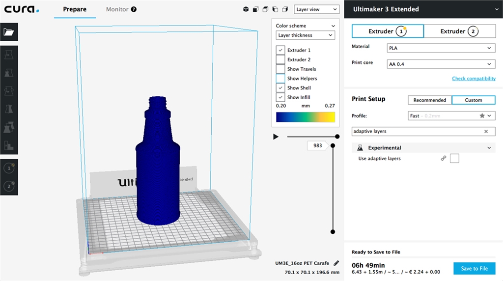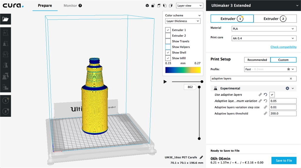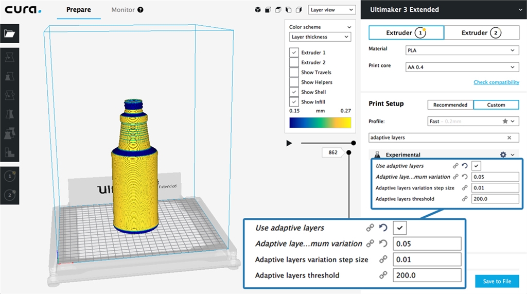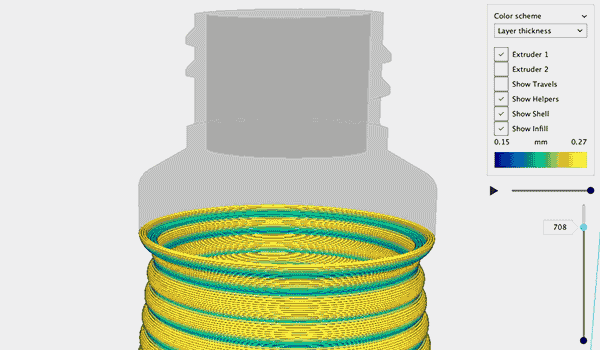 【3D列印軟體】用Ultimaker Cura的自適應(yīng)層功能快速列印 正如多數(shù)人知道的那樣,Ultimaker 3D列印機(jī)使用融合沉積建模(或FDM)來(lái)製造物理物件。 這個(gè)過(guò)程是通過(guò)將一個(gè)數(shù)位模型切片成一堆水平層,借助Ultimaker Cura等切片軟體。 讓圖層依次列印在一起,形成一個(gè)物理物件。 質(zhì)量與速度 多數(shù)切片軟體將每個(gè)圖層間分配一個(gè)不變的間距(稱(chēng)為圖層高度)。 非常精細(xì)的圖層高度會(huì)產(chǎn)生高解析度模型,但每個(gè)額外圖層都會(huì)增加列印過(guò)程的時(shí)間。較厚的圖層高度會(huì)列印得更 快 - 因?yàn)榱杏〉膱D層較少 - 但完成後的模型細(xì)節(jié)程度會(huì)降低。這些情況讓用戶處?kù)侗仨氝x擇的位置,以優(yōu)化列印的 時(shí)間或列印品質(zhì)。 如果你能擁有兩全其美的世界 – 讓你的列印圖層高度能自己適應(yīng)物體的形狀呢? 自適應(yīng)層,自Ultimaker Cura 3.2以來(lái)可用的新切片特色使這些成為可能。 在產(chǎn)品開(kāi)發(fā)中應(yīng)用自適應(yīng)層 這在實(shí)踐中意味著什麼? Poly-Tainer Inc.是一家塑膠瓶製造商和裝飾商,生產(chǎn)使用於健康和美容市 場(chǎng)產(chǎn)品的容器。為加快3D CAD設(shè)計(jì)實(shí)施流程,他們投資兩臺(tái)用於內(nèi)部原型設(shè)計(jì)的Ultimaker 3 Extended列印機(jī)。 藉由3D列印技術(shù),Poly-Tainer能夠與他們的客戶(通常是Target和Walmart等主要零售商)共享準(zhǔn)確的概念模型, 並在投入高達(dá)100,000美元大量生產(chǎn)模具之前消除設(shè)計(jì)中的不確定性。 在Ultimaker Cura中使用「快速」切片檔案的瓶子原型。 層厚持續(xù)維持在0.2mm(200micron)。 使用自適應(yīng)層切片的瓶子原型。 列印時(shí)間減少了10%,並且對(duì)需要它的區(qū)域給予更多細(xì)節(jié)。 最終產(chǎn)品在貨架上的外觀是販?zhǔn)圻^(guò)程的重要考慮因素。使用自適應(yīng)圖層,Poly-Tainer可以在比具有不變圖層高度的 模型在更少的時(shí)間內(nèi)列印出具改進(jìn)外觀和品質(zhì)的細(xì)節(jié)概念模型。 模型的角度部分每層都具有更精細(xì)的步驟,重要的設(shè)計(jì)元素(例如瓶子頸部的線跡)具更好的細(xì)節(jié)。 使用Ultimaker Cura圖層視圖中包含的層厚顏色方案,可以顯示層厚的變化。 在這個(gè)例子中,較厚層是黃色的, 較精細(xì)層是藍(lán)色的。 Ultimaker 3的雙重?cái)D出功能可以使用可溶解的PVA支撐材料,有助於實(shí)現(xiàn)設(shè)計(jì)特徵,例如「底部提高」,這是製造 瓶子中的重要設(shè)計(jì)元素。 與恆定層高度相比,使用自適應(yīng)層和可溶解PVA支撐能更快速的創(chuàng)造此概念模型,而且具 有定義明確的裝飾斜面,增加的細(xì)節(jié)助也幫助裝飾瓶子過(guò)程時(shí)提供的精準(zhǔn)的多色網(wǎng)狀列印。 底部提高是保健和美容產(chǎn)品容器的理想特徵。 此功能的水平橫截面顯示藍(lán)色的支撐結(jié)構(gòu)。 列印完成後, 支撐材料可以更容易的溶解在自來(lái)水中。 精準(zhǔn)的3D列印概念模型使Poly-Tainer能夠在生產(chǎn)工具創(chuàng)造第一個(gè)產(chǎn)品之前訂購(gòu)訂製的裝飾工具。 這讓新設(shè)計(jì)推向市 場(chǎng)的時(shí)間節(jié)省了約4-6星期的時(shí)間。 自適應(yīng)層如何優(yōu)化速度和細(xì)節(jié) Ultimaker Cura的自適應(yīng)圖層功能可分析模型外壁的傾斜角度。 切片引擎會(huì)優(yōu)化每個(gè)部分的層厚。 曲線以更精細(xì) 的圖層分析率列印,而垂直平坦區(qū)域則列印更厚的圖層,縮短列印時(shí)間。 計(jì)算方式是自動(dòng)的,用戶可以指定的三個(gè) 參數(shù):最大變化量,變化步長(zhǎng)和層閾值。 預(yù)設(shè)參數(shù)通常就足以提供良好的結(jié)果,但可以進(jìn)行測(cè)試以進(jìn)一步優(yōu)化用戶 特定模型的列印時(shí)間,同時(shí)仍保留精細(xì)細(xì)節(jié)。 免費(fèi)可使用的切片軟體 Ultimaker Cura完全免費(fèi)提供給用戶。 您可以通過(guò)將此樣本.STL檔案載入到Ultimaker Cura 3.2或更高版本來(lái)嘗試 此功能。通過(guò)切換到自定義模式並在搜尋欄位中搜索「自適應(yīng)圖層」,從Ultimaker Cura的界面中訪問(wèn)自適應(yīng)圖層 的設(shè)置。我們一直喜歡聽(tīng)Ultimaker如何幫助人們簡(jiǎn)化業(yè)務(wù)流程。 你認(rèn)為哪些功能對(duì)你的工作流程最重要? 歡迎在我們的3D列印專(zhuān)家社群中分享您的想法。 特別感謝Poly-Tainer Inc.的Frank Cowles。 原文連結(jié):https://ultimaker.com/en/blog/52520-print-detailed-objects-faster-using-adaptive-layers-in-ultimaker-cura