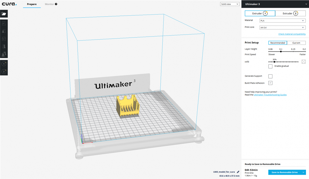 【3D列印軟體】歡迎使用Ultimaker Cura 3.0 Ultimaker Cura 3.0為使用者提供了最簡單,最便捷的體驗,無論是新手還是專業(yè)人士。使用新的界面,準備好你的3D 列印模型將比以往更加簡單。 隨著第三方外掛的開啟了所有新的可能性,我們決定從2.7移到3.0來標記這個新時代的完美方式。在全球範圍內(nèi)為100多萬名 使用者提供服務,我們的軟體已經(jīng)被設(shè)計成為專業(yè)人士採用3D列印工作流程的解決方案。 Ultimaker Cura 3.0提供: 全新UI介面。使用推薦的設(shè)定,使用直觀的滑軌準備列印,或使用自行設(shè)定單獨調(diào)整超過200個獨特的切片參數(shù),進行快速簡便的列印設(shè)定。 降低列印時間和材料消耗。推薦模式具有新的預設(shè)設(shè)定,目標在於節(jié)省列印時間,使用的材料和材料成本。 專業(yè)外掛集合。將Ultimaker Cura無縫集成到您的工作流程中。使用行業(yè)標準CAD軟體包(像是SolidWorks和Siemens NX), 或開發(fā)自己的定制外掛來滿足您的特定需求。 以下顯示Ultimaker Cura 3.0中的一些功能與改進和修復錯誤: 改進UI Ultimaker Cura 3.0具完全更新的UI和配色方案。 啟動速度更快。與之前的版本相比,啟動速度已經(jīng)減少了一半。 重新設(shè)計的啟動螢幕。啟動畫面已經(jīng)重新設(shè)計,以回應新的界面。 滑軌。推薦模式現(xiàn)在使用滑軌來改變切片參數(shù): •層厚和列印速度。輕鬆控制列印品質(zhì)與列印速度成正比。 •填充。填充密度現(xiàn)在可以輕鬆使用滑軌增加到10%。 使用直觀的滑軌輕鬆控制列印的功能。 光柵化板。現(xiàn)在列印平臺能夠顯示10mm和1mm的刻度,以獲得更精確的模型定位。 列印平臺現(xiàn)在顯示為10mm和1mm的刻度,用在更精確的模型定位上 列印機按鈕。列印機按鈕已從標籤更改為按鈕,按鈕顏色已更改,以符合新的配色方案。 圖層視圖位置。圖層視圖下拉框已從左下角移動到右上角。 列印時間位置。列印時間位置從3D導覽器的右下角移到通過網(wǎng)路列印/儲存到檔案的按鈕左側(cè)。 標籤寬度。標籤功能的寬度將根據(jù)字體空間(支持多種語言)而改變。 第三方外掛和CAD集合 第三方外掛的功能。專業(yè)人士現(xiàn)在可以用自己開發(fā)的外掛取得更多Ultimaker Cura 的功能以簡化其工作流程。 目前可用SolidWorks和Siemens NX的兼容外掛,可以在外掛瀏覽器中找到??梢詥螕舭惭b外掛,他將會在使用時自動更新。 SolidWorks集合。與SolidWorks 2016及以上版本兼容,此外掛可達成兩個軟體之間的無縫集合。 在SolidWorks中準備您的設(shè)計。 按「匯出到Ultimaker Cura」的按鈕。 將Ultimaker Cura打開,將您的設(shè)計匯入,準備切片和列印。 Siemens NX集合。在Siemens NX中創(chuàng)造的設(shè)計可以點擊一個按鈕送進Ultimaker Cura。如果在Siemens NX中修 改了設(shè)計,可以在Ultimaker Cura中再次單擊按鈕進行更新。此外掛與Siemens NX 10和11兼容。 新的切片功能 PVA的逐漸支撐。列印時間和材料消耗量通過在支撐體中列印較少的PVA填充並在接近頂部時減少。這同時減少了 PVA溶解的時間。在(額外)精細和正常的品質(zhì)設(shè)定中,PVA填充層會列印雙重厚度,減少更多的列印時間。 填充在邊緣會變得更加密集,需要較少的支撐材料。 左側(cè)的列印是使用Cura 2.6進行切片。右邊列印是使用Ultimaker Cura 3.0進行切片。請注意右邊列印的是不太密集 的支撐 - 支撐向上與邊緣時會逐漸增加密度。 Z縫選擇。讓使用者控制要在哪裡放置接縫 - 將其隱藏在凸角或容易移除的位置。這不會使角落尖角影響接縫位置。 交叉填充。與其他填充類型相比,分形圖案填充需要些許的內(nèi)縮。 這對於彈性材料是有用的,因為它在擠出時會導致少數(shù)材料伸長。由此提供的內(nèi)部結(jié)構(gòu)使彈性模型具有更大的阻力, 保持所有方向有“軟”的特性。 在Ultimaker Cura的交叉填充 使用TPU 95A的列印範例 四分之一立方體填充。類似於四面體(八位字節(jié))填充,但是一半的線被移動到週期的一半。這種模式犧牲了八角形 填充物的一些剛性以獲得更大的韌性。 去除表面寬度。從模型中去除薄的表面,以防止列印噴頭彎曲,反過來又可以防止振動。缺少振動也會提高輕微突出 部分的列印品質(zhì)。 表面擴張距離。切割陡峭突出的表面使列印不那麼堅固。 透過擴張牆壁厚度的外觀,功能將得到更好的支撐。此外,像填充物頂部像是塔的功能會更強。 增加表面壁數(shù)。此功能現(xiàn)在為預設(shè)啟用。在填充物頂部直接列印額外的表面可能會導致縫隙,捲曲。 首先通過表面周圍列印牆壁來減少,並且提高列印的速度。 表面最小擠出。阻止Ultimaker Cura 3.0填補可能已經(jīng)填充的小間隙,從而減少細線,以及更好的頂 部細節(jié)和更快速的列印。 PVA回縮。在列印噴嘴更換期間PVA的縮回長度增加。結(jié)合減小的回縮距離和稍微高的最大計數(shù), 這確保減少的串聯(lián)和更可靠的結(jié)果。退回的最小行駛距離減小,最大計數(shù)略微增加。顯著減少了列 印的時間。 修復Bug 在我們社群的幫助下,我們已經(jīng)解決了以下問題: •連接到列印機時,訂製的材料配置檔案將不再發(fā)送到Ultimaker Cura •同步z-hop與更改圖層 •MacOS 上的內(nèi)存洩漏 •檔案打開時列印機名稱未加載 •預設(shè)情況下,在非Ultimaker 3機器上選擇Doodle3D Wifi框 有關(guān)功