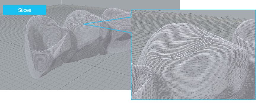 它可以進(jìn)行動(dòng)態(tài)計(jì)算衡量(切片, 修復(fù)…等等)。這意味著,當(dāng)列印機(jī)正在建構(gòu)目前的圖層時(shí),他依然計(jì)算著下一層塗層,因此它會(huì)根據(jù)建構(gòu)的圖層時(shí)間分配計(jì)算,避免額外的等待時(shí)間。