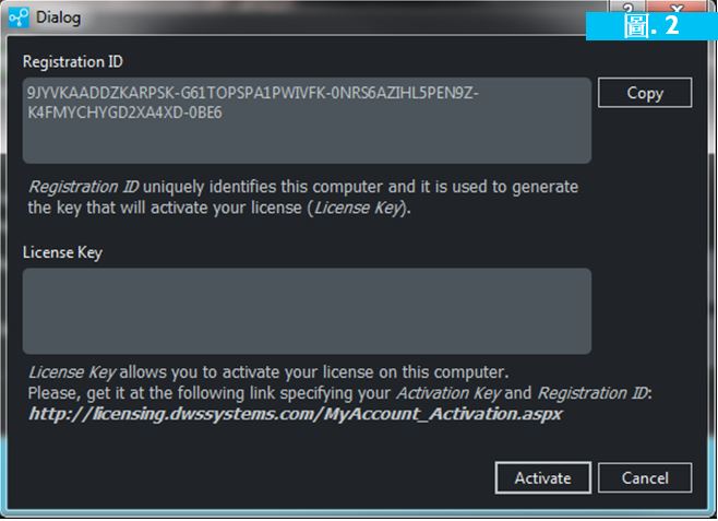 - 如果你沒(méi)有啟用序號(hào)你可以藉由“Try按鈕來(lái)進(jìn)行4天的軟體評(píng)估測(cè)試。要獲得啟用序號(hào)(如果你有權(quán)利),您可以註冊(cè):http://licensing.dwssystems.com/registration.aspx (*).