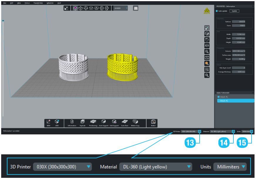NAUTA+® 中的工具是參數(shù),所以您可以隨時(shí)修改工具的結(jié)果。例如:您可以更改支撐厚度、位置…等等,來(lái)調(diào)整不同材料列印的物件。