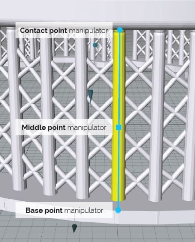 ● 接觸點(diǎn)(Contact Points):顯示每個(gè)接觸點(diǎn)的點(diǎn)操縱器。該點(diǎn)連接到物件表面,因此在拖動(dòng)時(shí),投影到物件上。