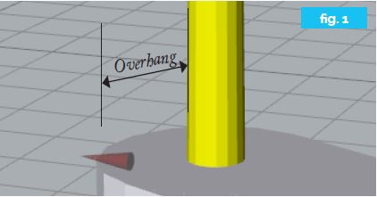 2. 懸突Overhang: 基座邊緣和支撐邊緣之間的距離。(fig. 1).