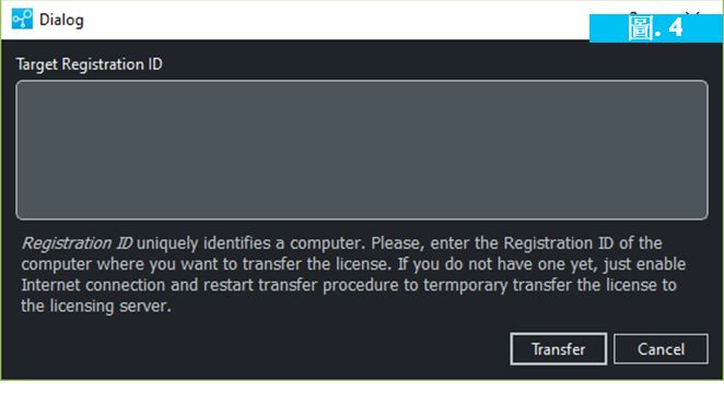 將註冊(cè)ID輸入電腦A中的“Target Registration ID” 欄位然後按下 “Transfer” 按鈕。