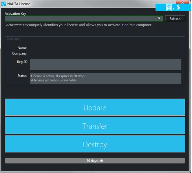 點(diǎn)擊在授權(quán)視窗中的 “Transfer”按鈕 (在電腦 A). NAUTA+® 將關(guān)閉,然後授權(quán)將在電腦A上停用。.