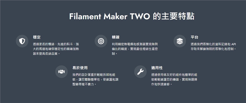 提高穩(wěn)定性 使用 Filament Maker TWO體驗(yàn)終極的穩(wěn)定性和性能。它旨在提供一致的線材質(zhì)量,是您先進(jìn)長(zhǎng)絲擠出的完美伴侶。特點(diǎn)包括: - 高馬達(dá)扭矩 - 最佳化加熱 - 提高壓縮比 - 更優(yōu)化的LD比率