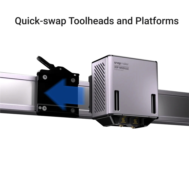 Quick-swap platforms and tool heads allow you to switch between 3 functions in 1 minute.