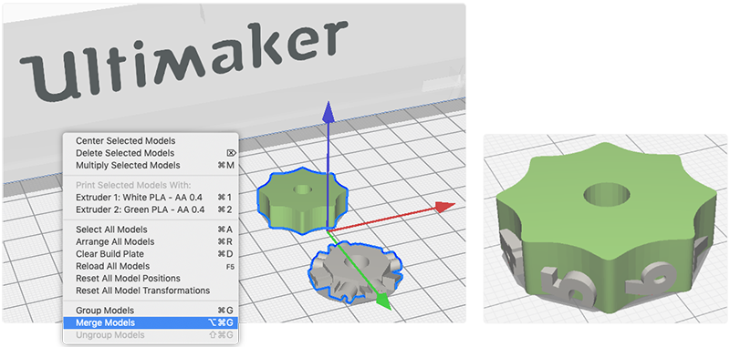 Ultimaker Cura可各別設(shè)定、更改模型使用的3D列印噴頭。