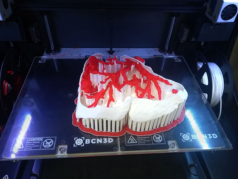 腫瘤學(xué)方面的手術(shù)流程非常複雜,過程中醫(yī)生必須在重要器官周圍來回觀察,確定腫瘤位置後再進(jìn)行切除。BCN3D使用的是IDEX(Independent dual extruders)獨(dú)立雙噴頭3D列印技術(shù),兩個(gè)噴頭系統(tǒng)完全分開、各別移動,運(yùn)作時(shí)噴嘴的動線不會互相牽制;醫(yī)療團(tuán)隊(duì)可以同時(shí)使用兩種不同材質(zhì)的材料,製作人體不同部位的骨骼、組織模型,或使用兩種不同顏色的3D列印線材,為醫(yī)生提供不同區(qū)域的視覺輔助。