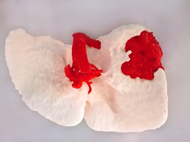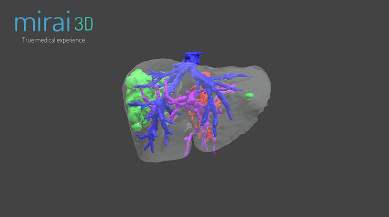 Mirai3D團(tuán)隊(duì)使用進(jìn)行雙色3D列印,製作肝臟、肝血管、腫瘤位置的模擬模型,醫(yī)生團(tuán)隊(duì)在進(jìn)行手術(shù)前,研究腫瘤和肝臟之間可能會產(chǎn)生的各種問題,了解血管結(jié)構(gòu)後,得到最準(zhǔn)確的參考。