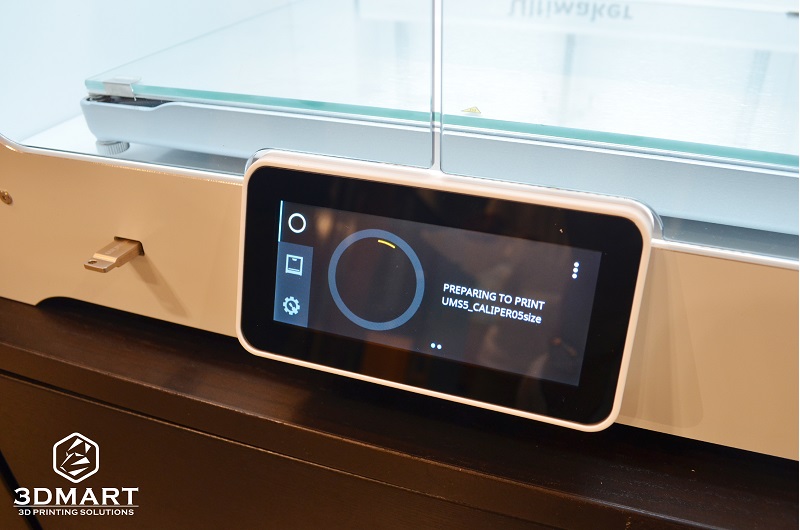 【3D列印機(jī)】桌上型FDM大尺寸3D印表機(jī) - Ultimaker S5 開箱文 讓我們期待已久的Ultimaker 最新款3D列印機(jī)終於抵達(dá)三帝瑪?shù)霓k公室,今天要帶大家搶先體驗(yàn)開箱與測(cè)試列印啦! 首先你眼前看到的龐大紙箱裡裝的就是我們今天的主角-Ultimaker S5啦!,超級(jí)大的紙箱跟之前Ultimaker系列的紙 箱尺寸相比大上許多,開箱時(shí)原廠貼心設(shè)計(jì)成可以直接從上方開啟的方式,下方是利用塑膠扣做固定。 接著像開禮物般從上方優(yōu)雅輕鬆的掀開後,可以看到上下兩邊都有用泡棉安全保護(hù)著Ultimaker S5 3D列印機(jī)。 拿掉上方的黑色泡棉後,可以看到機(jī)器裡面的空間平整放置著隨附的配件包以及線材(於兩側(cè)紙箱內(nèi))。 接著輕鬆取出放在機(jī)器內(nèi)部的配件包與2捲線材。 Ultimaker S5裡附贈(zèng)的配件工具包與2捲750g線材PVA 與新線材Tough PLA,(註:Tough PLA線材具類似ABS的 韌性,且有PLA的簡(jiǎn)單性。) 開啟配件工具包裡會(huì)先看到簡(jiǎn)單操作說明書(英文) 下方放置一片超大塊的玻璃片 將玻璃片拿開再掀起紙片後,會(huì)看到所有會(huì)使用到的工具及零件、樣品等完整的放置在泡棉中,噴嘴附有AA0.4mm 兩個(gè)與BB0.4mm一個(gè)。其他用具與之前系列附的都大致相同。 組裝完成後擺在我們Ultimaker3的旁邊顯得巨大許多,有種媽媽跟小孩排排站的感覺。 Ultimaker S5這次在外觀上最大的不同除了體積變的更大之外,最特別的一項(xiàng)設(shè)計(jì)就是多一道玻璃門,玻璃門上的 磁鐵扣可以完美貼合在列印機(jī)上,在也不需要另外加裝門板了,看倌您說是不是超級(jí)方便的呀! Ultimaker S5的噴嘴在尺寸上也有變大一些(約0.5cm),X.Y軸也明顯加粗更加堅(jiān)固,噴頭前端部分也有更多的保護(hù) ,不易造成損傷。 拿Ultimaker3與Ultimaker S5玻璃大小比較一下,列印面積真的變大超多啊,可以拿來印更多有趣的大型物件了 (開始默默將大物件放入待印名單中~~~)。 後方的新設(shè)置了線材流量感測(cè)器,當(dāng)線材不足時(shí)會(huì)自動(dòng)暫停,直到補(bǔ)充完成才會(huì)重新列印。 放入線材後,別忘了要先開始進(jìn)行XY校正,等列印完成後拿出工具包中的校正紙,墊在玻璃片下方找出最直那條線 的數(shù)值,並在螢?zāi)恢休斎搿?br /> 校正完畢就可以開始列印啦,這次我們列印的是煞車卡箝,直接使用箱子內(nèi)附的Tough PLA 和PVA線材,層厚設(shè)定0.15mm。 在螢?zāi)恢羞x定好檔案時(shí)可以看到3D列印檔的圖像、名稱以及所選線材的資訊,讓列印時(shí)更加安心,以往的3D列印機(jī) 都只能顯示檔案名稱,看不到圖像讓人有點(diǎn)心慌慌,深怕金魚腦存錯(cuò)檔名的人們?cè)僖膊恍钃?dān)心了!!! 按下開始列印後,會(huì)跑出圓形進(jìn)度條讓你知道預(yù)備的進(jìn)展。 開始列印囉!!! 列印完成的煞車卡箝,由於物件本身尺寸不大,待在Ultimaker S5的樣子顯得有種孤零零的空蕩感。 近照再來一張,泡進(jìn)水裡約1天後,就可以看到精細(xì)度相當(dāng)高的煞車卡箝模型囉!!! 圖中可看到列印品質(zhì)非常優(yōu)質(zhì),細(xì)節(jié)呈現(xiàn)也相當(dāng)完整。 今天的Ultimaker S5 3D列印機(jī)開箱文就分享到這啦! 下次我們將會(huì)準(zhǔn)備更大型的3D檔案來列印,挑戰(zhàn)他的極限。 欲了解更詳細(xì)的Ultimaker S5歡迎預(yù)約來三帝瑪辦公室看展示機(jī),或是來電詢問唷! 2018年5月底前購買Ultimaker S5 享有預(yù)購優(yōu)惠價(jià)240000元,一起到商品頁面看看吧~~~ 這次列印的煞車卡箝3D檔案來源:https://grabcad.com/library/generative-design-f1-brake-caliper-1