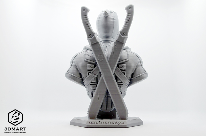 前陣子在漫威繼「復(fù)仇者聯(lián)盟」系列後上映的搞怪英雄電影「死侍」(Deadpool )造成一股風(fēng)潮,可愛又迷人的正派(或反派)腳色亦正亦邪的風(fēng)格有別於其他的正義英雄,特別受到觀眾喜歡?!杆朗獭沟姆b設(shè)定除了像蜘蛛人般的全套緊身衣以外,還有許多穿戴式配件,包括背帶工具包、長劍、防護(hù)盔甲、腰帶等,繼魔獸之後,這次要挑戰(zhàn)不使用支撐材的方式列印。(延伸閱讀:魔獸世界怒吼的杜洛坦。)