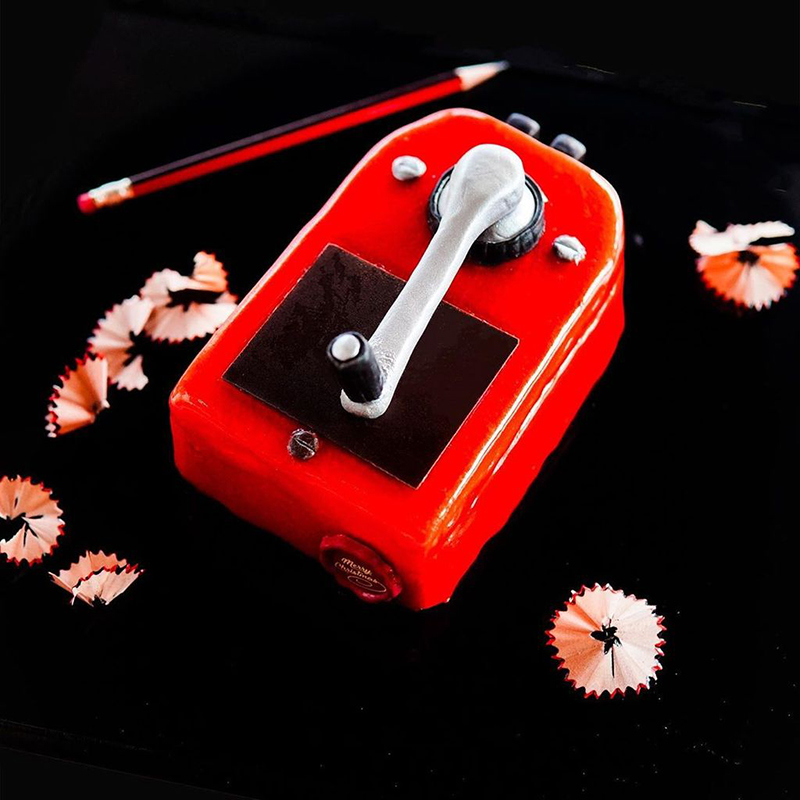香港君悅酒店的甜點師傅.斯密塔(Smita Grosse),使用真空成型技術(shù),搭配通過食品安全認證的注塑片,在巧克力蛋糕上加入削鉛筆機的手把,不但融合了兒時的記憶,也以最低的成本嘗試各種想法,完成削鉛筆機的最終造型,再進行甜點小量生產(chǎn)!