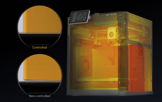 X1E 3D列印機為工業(yè)用途而設計,同樣也有人工智慧演算法利用光達和電腦視覺來檢測第一層的瑕疵和炒麵誤差,並配有腔室溫度控制系統(tǒng)(高達 60°C 或 140°F),列印速度高達500 mm/s,擠出流量為32 mm³/s,具有0.1 mm的精度,相較X1C可列印的線材更廣泛,特別是PC或ABS材質
