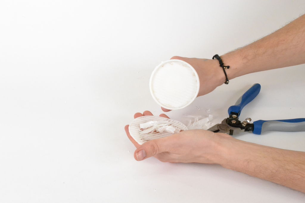 3D列印的啞鈴握把造型簡單,只需要注意搭配罐子的直徑大小,簡單好上手,還能回收再利用!列印完成後,用鉗子將零件底部與錫罐圓柱之間的支撐結(jié)構(gòu)取下,使用膠水接合3D列印的物件與罐頭。