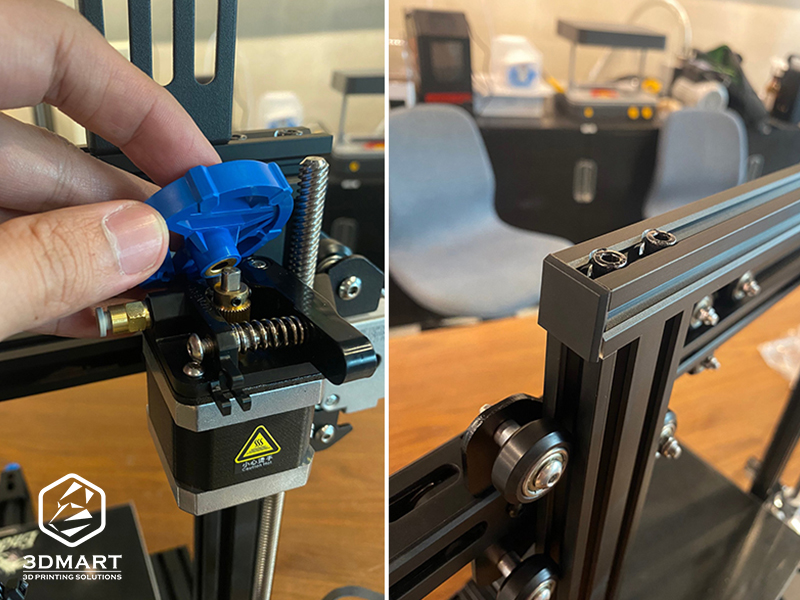 將「Z軸移動(dòng)組件」沿著兩邊「V輪」插入「Z軸軸桿」的兩端,移動(dòng)Z軸軸桿,上下活動(dòng)順暢,不會(huì)自然滑下即可!調(diào)整輸送帶至合適鬆緊度,上下擺動(dòng)約0-3mm即可。