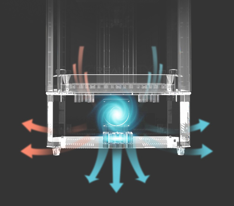 考慮到光固化3D列印時,樹脂可能散發(fā)出的味道,Creality特別為此設(shè)計雙風扇散熱系統(tǒng),搭配活性碳空氣過濾,3D列印機可以有效進行散熱、通風,吸收和過濾材料異味,保障每個使用者健康、舒適工作環(huán)境。