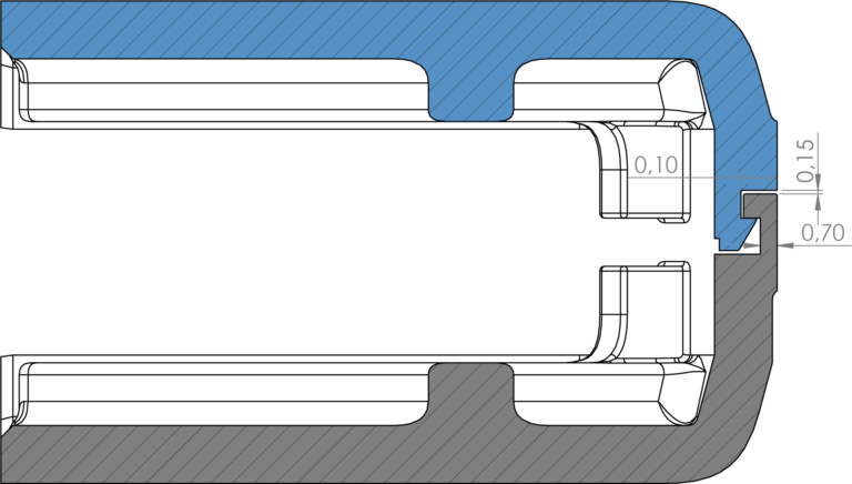 其設(shè)計(jì)原理是利用套筒的開(kāi)放性彈片設(shè)計(jì)能產(chǎn)生些微張力讓卡扣通過(guò),並利用倒鉤反向卡扣套筒;由於連接處在內(nèi)部,會(huì)被組件外殼完全覆蓋,因此如果間隙設(shè)計(jì)正確,物件會(huì)十分非常牢固和穩(wěn)定。